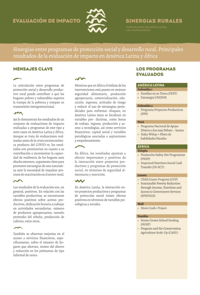Sinergias entre programas de protección social y desarrollo rural. Principales resultados de la evaluación de impacto en América Latina y África