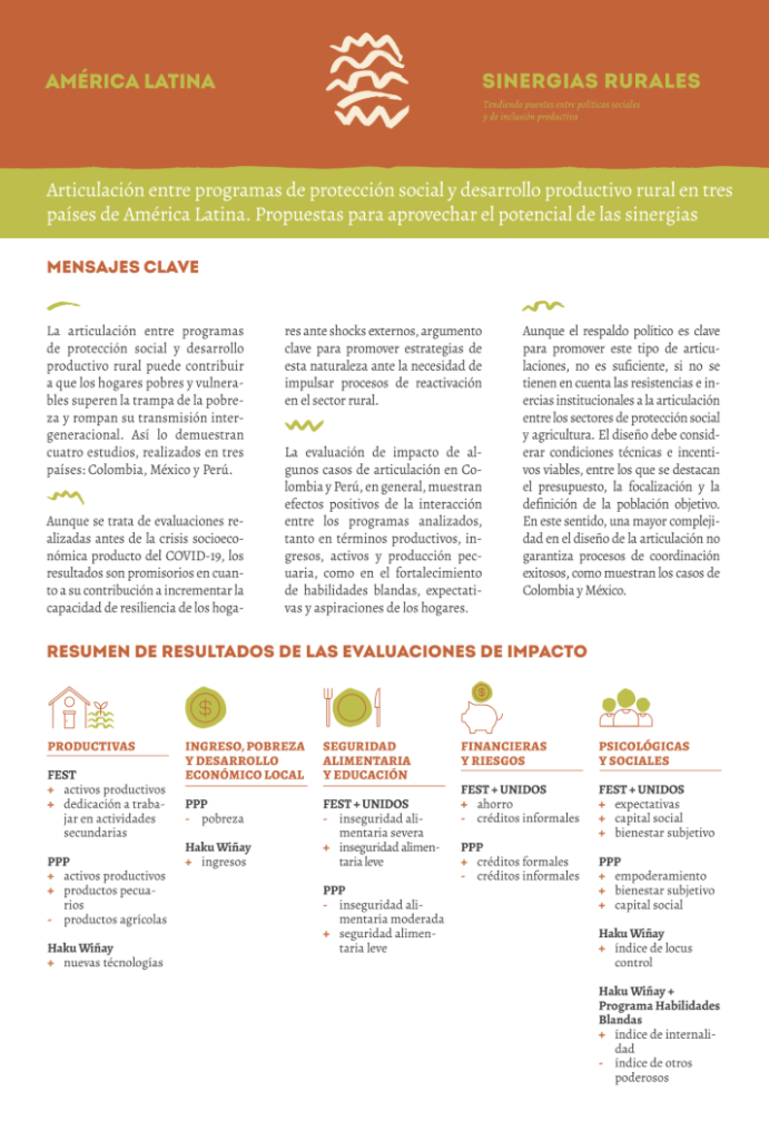 Articulación entre programas de protección social y desarrollo productivo rural en tres países de América Latina. Propuestas para aprovechar el potencial de las sinergias
