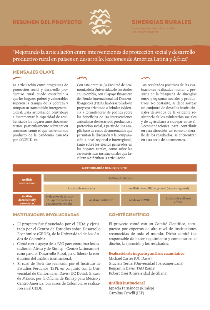 Este policy brief presenta un resumen del proyecto “Sinergias Rurales”, que busca tender puentes entre políticas sociales y de inclusión productiva para ayudar a hogares pobres y vulnerables a superar la trampa de la pobreza.