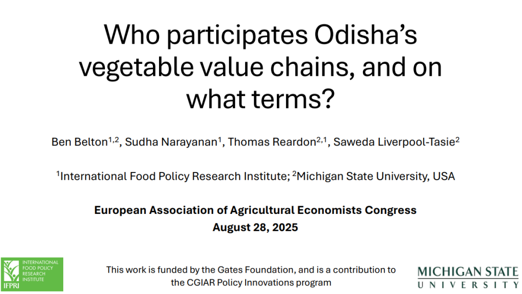 During the 18th Congress of the European Association of Agricultural Economists (EAAE) in Bonn, Germany, held from 26 to 29 August 2025, members of the INCATA team shared preliminary findings on inclusion in Odisha’s vegetable value chains. Their presentation on 28 August 2025 was titled “Who participates in Odisha’s vegetable value chains, and on what terms?”.